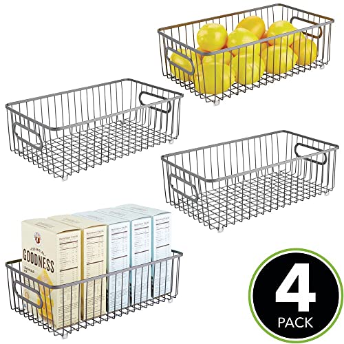 mDesign keukenmand van metaal – flexibele bewaarmand voor de keuken, voorraadkamer enz. – compacte en universele draadmand met handgrepen – donkergrijs, Verpakking van 4