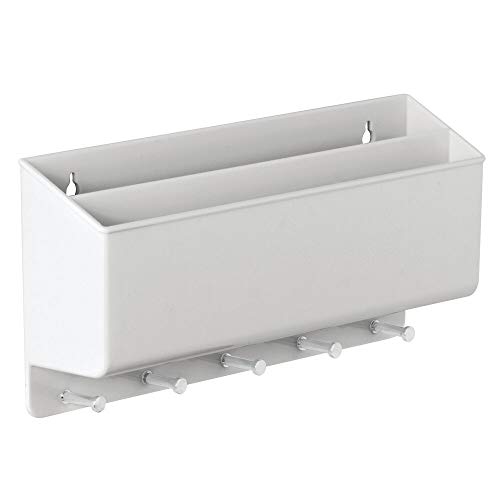 Specification: mDesign praktische Briefablage für Flur und Küche – kompaktes Schlüsselboard mit 2 Fächern für Post und 5 Haken – wandmontiertes Schlüsselbrett aus Kunststoff und Metall – hellgrau