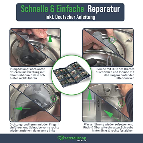 Reparatieset pomppot voor vaatwassers van Bosch, Siemens, Neff – 182 mm Ø reserveonderdelen shop basics zoals 12005744 | inclusief tweede reserveafdichting