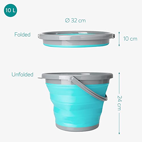 Specification: Navaris vouwemmer, silicone emmer, opvouwbaar, 10 liter, poetsemmer voor reiniging, camping, vissen, keuken, huishoudemmer, compact, capaciteit 10 l, blauw en grijs., 10l