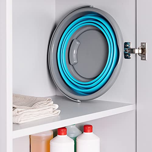 Navaris vouwemmer, silicone emmer, opvouwbaar, 10 liter, poetsemmer voor reiniging, camping, vissen, keuken, huishoudemmer, compact, capaciteit 10 l, blauw en grijs., 10l