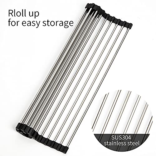 Specification: Zusammenklappbares Abtropfgestell für Küchenspüle, Mehrzweck-Abtropfgestell, aufrollbarer Edelstahl-Utensilienhalter, kann für viele Küchenaufgaben verwendet werden, platzsparend für kompakte Küche