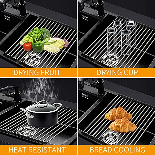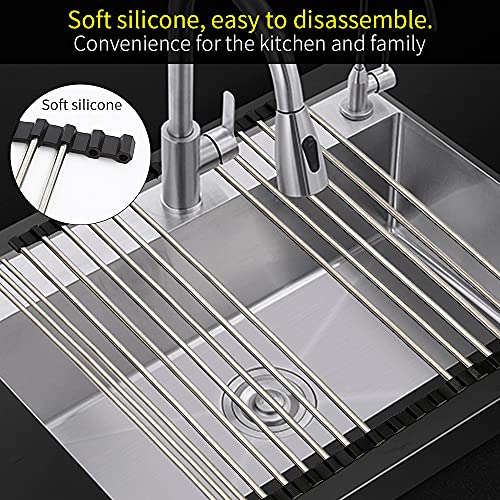 Zusammenklappbares Abtropfgestell für Küchenspüle, Mehrzweck-Abtropfgestell, aufrollbarer Edelstahl-Utensilienhalter, kann für viele Küchenaufgaben verwendet werden, platzsparend für kompakte Küche